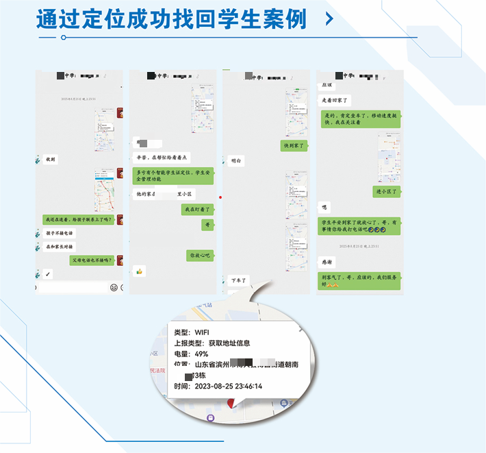 解决案例 诺宏智能学生证通过定位成功找回学生案例 2024年 6月 29日 / 2023年8月25日,滨州某学校一学生走失,与家长及老师均失去联系。此时该学生老师找到诺宏智能寻求帮助,我司工作人员当即查看学生定位信息,锁定学生当前所在位置,在确保学生位置安全的同时,也让该生家长与老师放下心来! 最终,该生在我司定位系统的实时监控下,成功安全的回到家中!